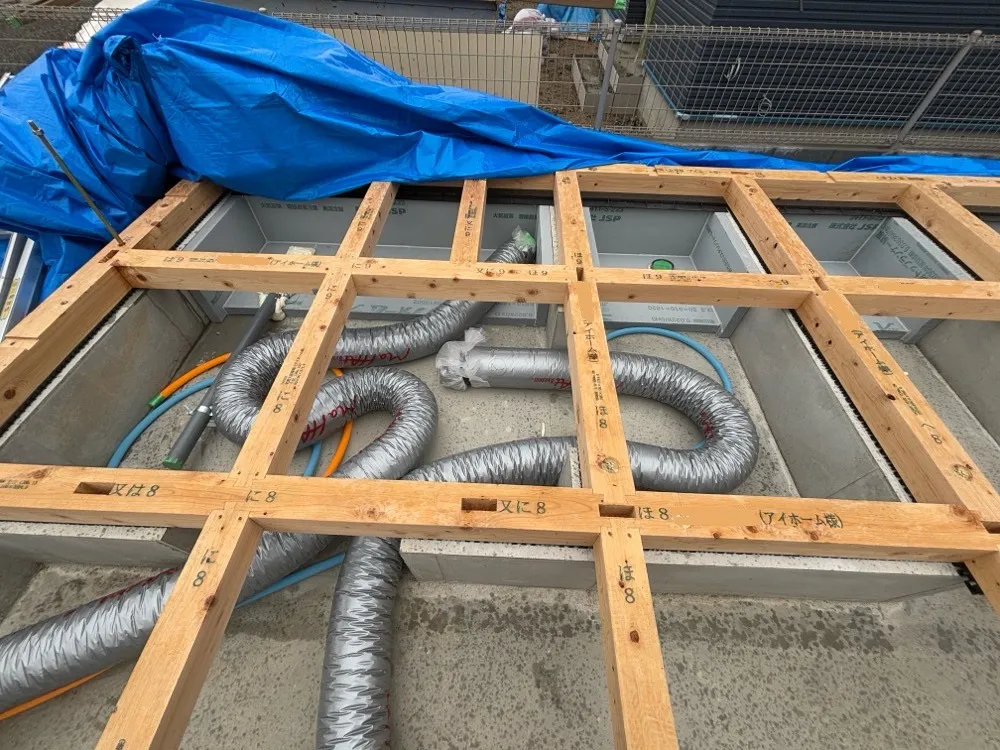 床下のダクトは、工事期間中の初期に終わります。