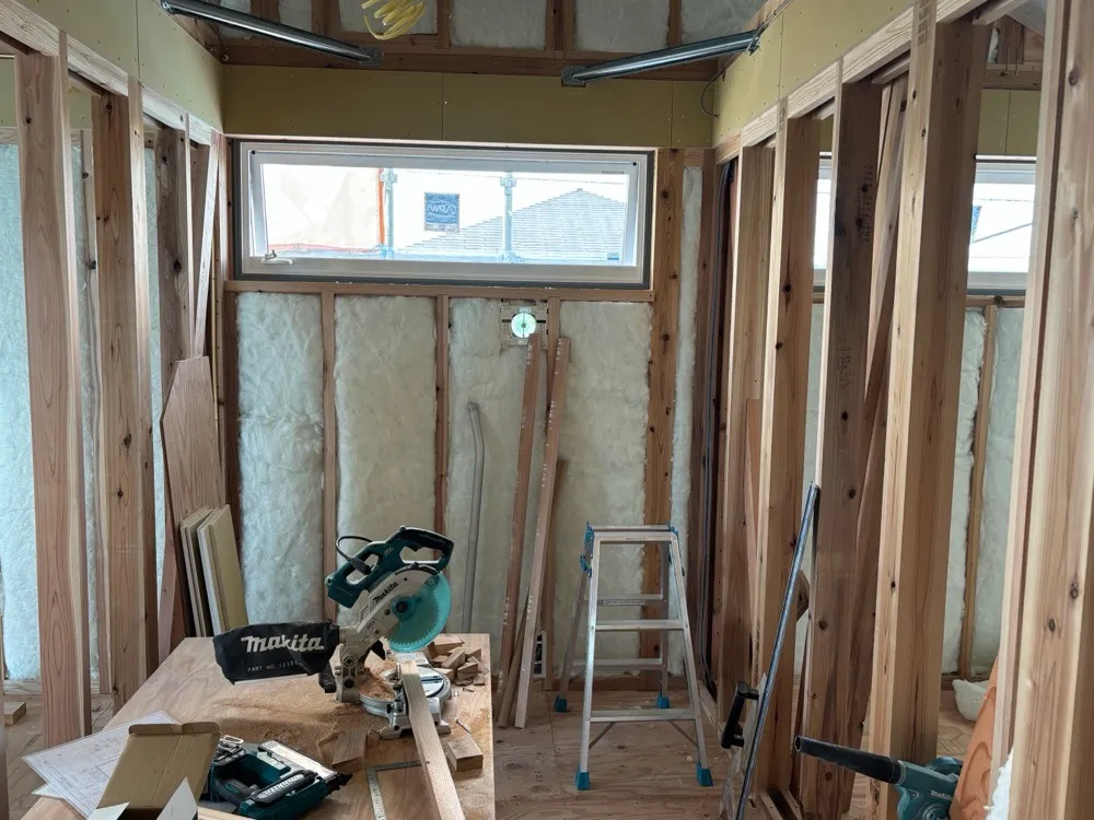 断熱工事が終わると、この後は石膏ボードを張り、壁紙を貼って仕上げていきます。