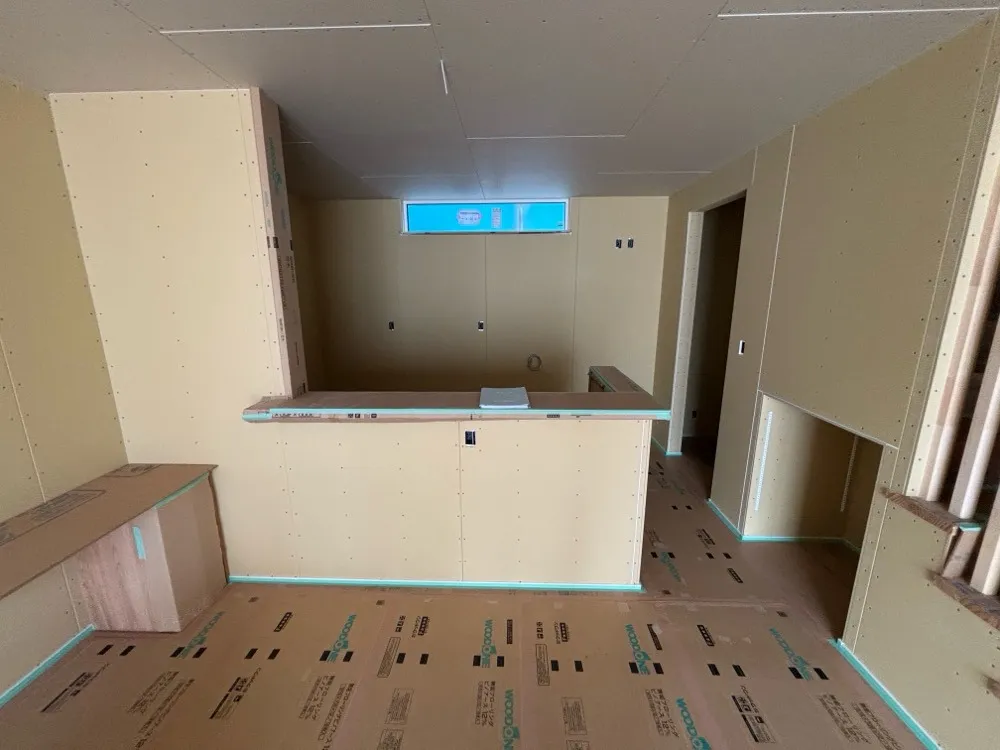 天井に設置された照明の配線も確認でき、完成後の明るく快適な住空間が目に浮かびます。