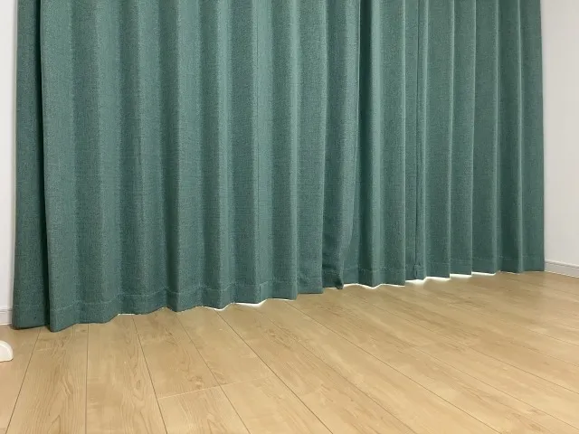 床まで届く長さにすること。短いカーテンだと窓下から冷気が流れ込んでくるのでそれを防ぎます。